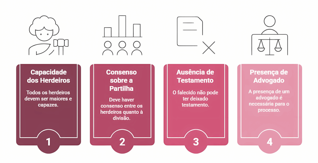 Para que o inventário possa ser feito em cartório, é necessário observar os seguintes requisitos: